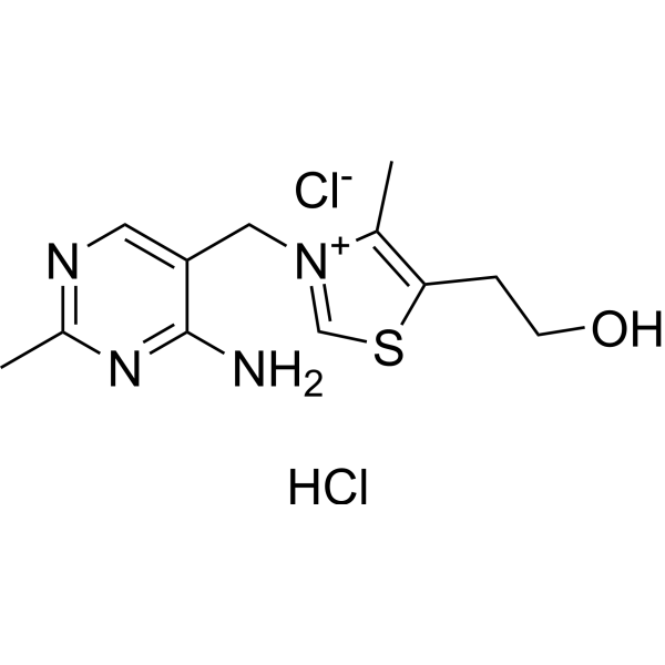 产品活性:Thiamine hydrochloride (Thiamine chloride hydrochloride) 是必需的微量营养素,作为许多中枢代谢酶的辅因子。