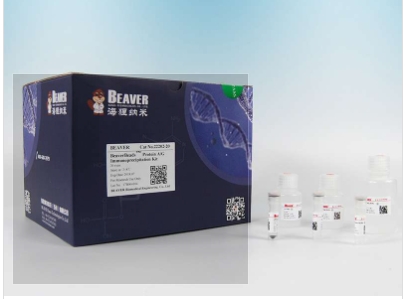 BeaverBeads™ Protein A/G 免疫沉淀磁珠试剂盒系列产品是利用海狸生物纳米表面技术,使Protein A/G 高密度定向包 被到超顺磁性微球表面,与当前国际免疫磁珠市场上同类产品相比,该产品具有更多的抗体结合位点,磁珠使用量 更少,非特异性结合率低,可便捷高效地进行免疫沉淀实验。每毫升免疫沉淀磁珠结合Human lgG的能力可达到 300μg以上,单个沉淀反应仅需50μg磁珠即可完成检测。纳米级磁珠提供的超大比表面积,大幅缩短抗体与抗原吸附 所需的平衡时间,10分钟内即可完成抗体吸附过程,30分钟内完成抗原沉淀操作。简短的操作时间避免长时间操作 造成目标蛋白被水解,保证了目标蛋白的活性及蛋白复合物的完整性。 免疫沉淀磁珠试剂盒配有经过优化的预制缓冲液,为免疫沉淀实验提供了最佳的反应条件,提高了免疫沉淀实验的 稳定性。 本产品可广泛应用于细胞裂解物、细胞分泌上清、血清、腹水等样品中抗原的免疫沉淀反应。