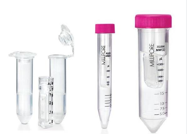 Millipore超滤管超滤离心管 Amicon Ultra系列离心超滤管,可用于生物样品纯化、蛋白质浓缩、脱盐和缓冲液更换,垂直结构的膜减少了浓差极化,快速离心并可直接吸取回收样本,浓缩倍数高达80-100 倍,是样本处理的得力助手。 超滤管分为0.5ml、4ml、15ml三种上样体积,并有3kd、10kd、30kd、50kd、100kd五种截留分子量