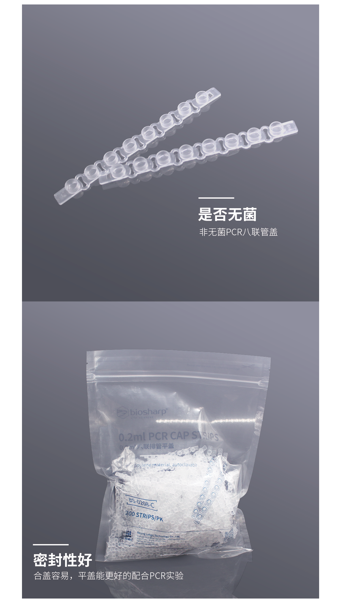 BS-0208-C 200条/包 20包/箱 - 非无菌PCR八联管盖- 合盖容易、密封性好- 开盖平顺、易于操作- 平盖能更好的配合PCR实验- 可高压灭菌